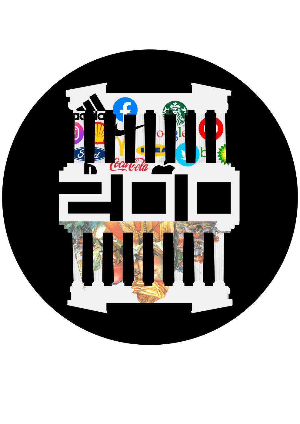 (Το έργο είναι στρογγυλό και στην μέση θα έχει κάτι σαν καρφί για να γυρίζει γιατί είναι διαδραστικό για το κοινό. Οι διαστάσεις μπορεί να είναι σε διάφορα μεγέθη ανάλογα με τον διαθέσιμο χώρο)