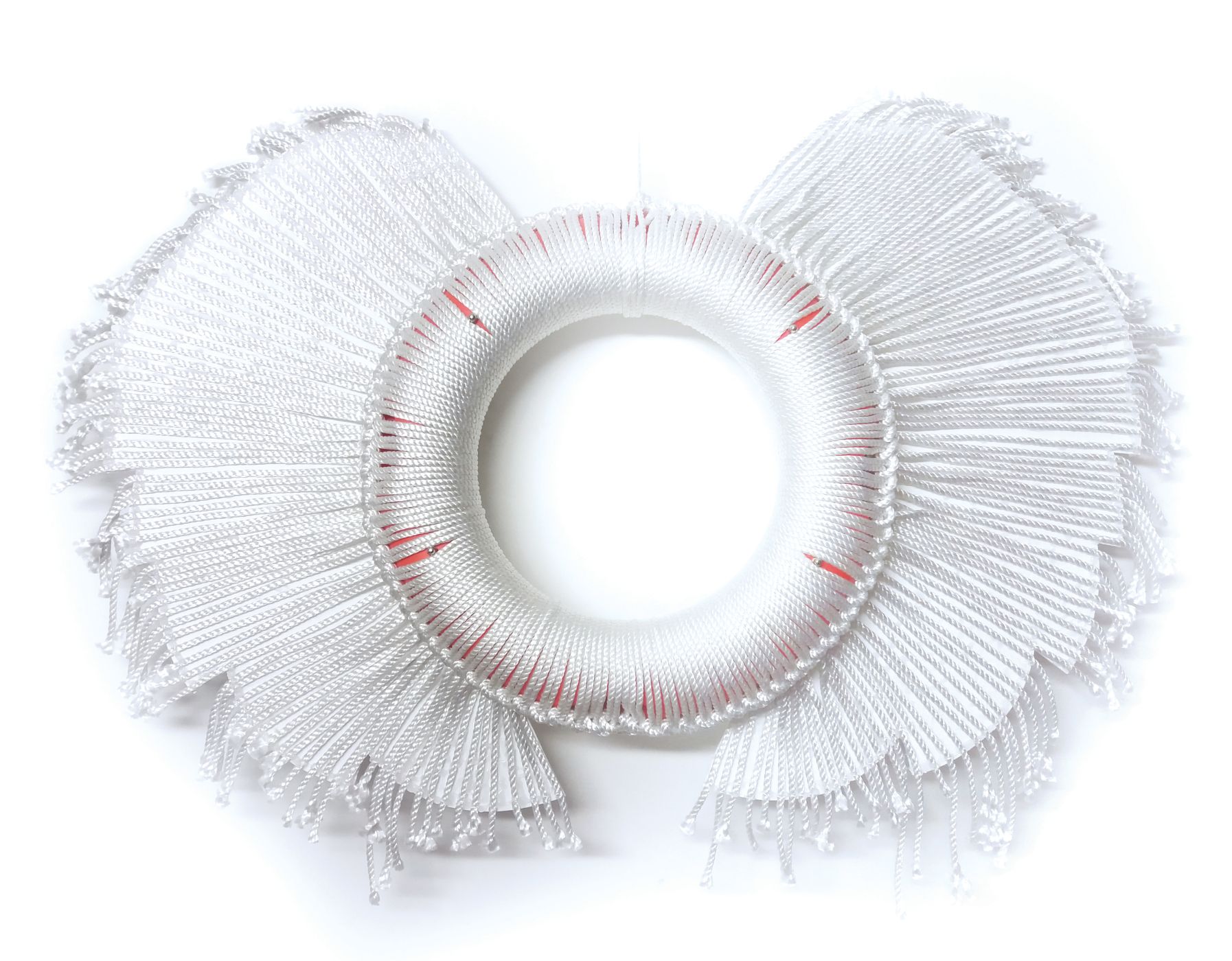 Μετά από 400 χρόνια υποδούλωσης και ανελευθερίας η έξοδος του Μεσολογγίου θα αποτελέσει το πρώτο “σωστικό σωσίβιο” του ελληνικού έθνους. Πράξεις σαν αυτή, οδήγησαν στη αποτίναξη των 400 χρόνων υποδούλωσης ωσάν άλλοι ναυτικοί κόμποι που με το τράβηγμα του νήματος λύονται μονομιάς. Έτσι ένα επενδεδυμένο “ναυτικά” σωστικό σωσίβιο με φτερά αγγέλου, ως άλλη Ελλάς Ευγνωμονούσα, προβάλλει ένα ζήτημα ηθικής στάσης, την αναγνώριση της αρετής, την απόδοση τιμής στους ήρωες αλλά και τη συνειδητοποίηση της υποχρέωσης για μίμηση και συνέχεια σε κάθε μορφή υποδούλωση.