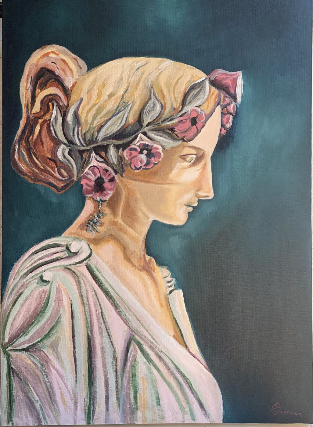 Βασίζεται στον μύθο του Πυγμαλίωνα που έφτιαξε το άγαλμα της Γαλάτειας από ελεφαντόδοντο, την ερωτεύτηκε και στη συνέχεια επιθυμούσε να τη ζωντανέψει με τη βοήθεια της Θεάς Αφροδίτης. Προσπέρασα διάφορα αφηγήματα που ερμηνεύουν την προσπάθεια του και τα κίνητρα αυτής, εστιάζοντας στη σκέψη ότι απλά ήθελε να ζωντανέψει τον έρωτα του. Μια Γαλάτεια γήινη, υπαρκτή. Και όντως κατάφερε να κάνει το όνειρο του πραγματικότητα.