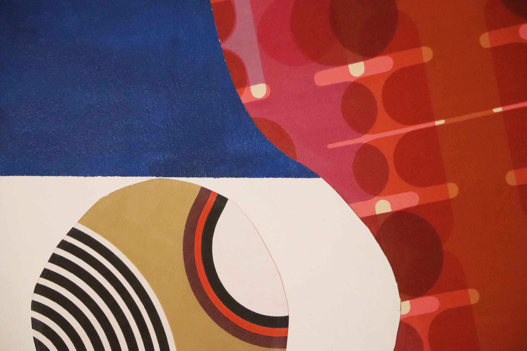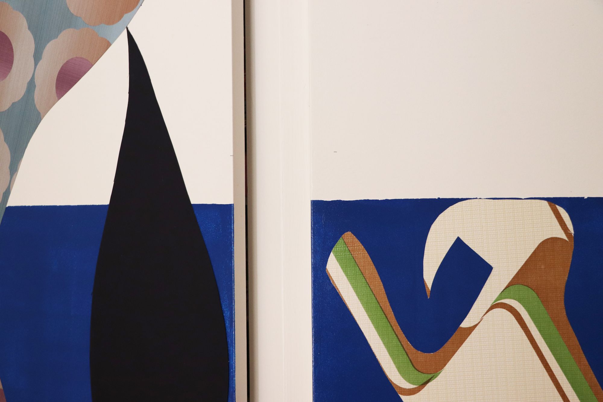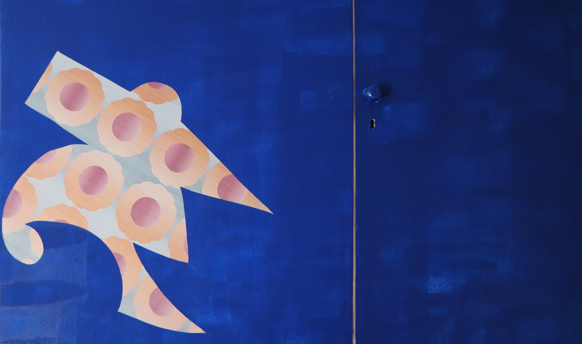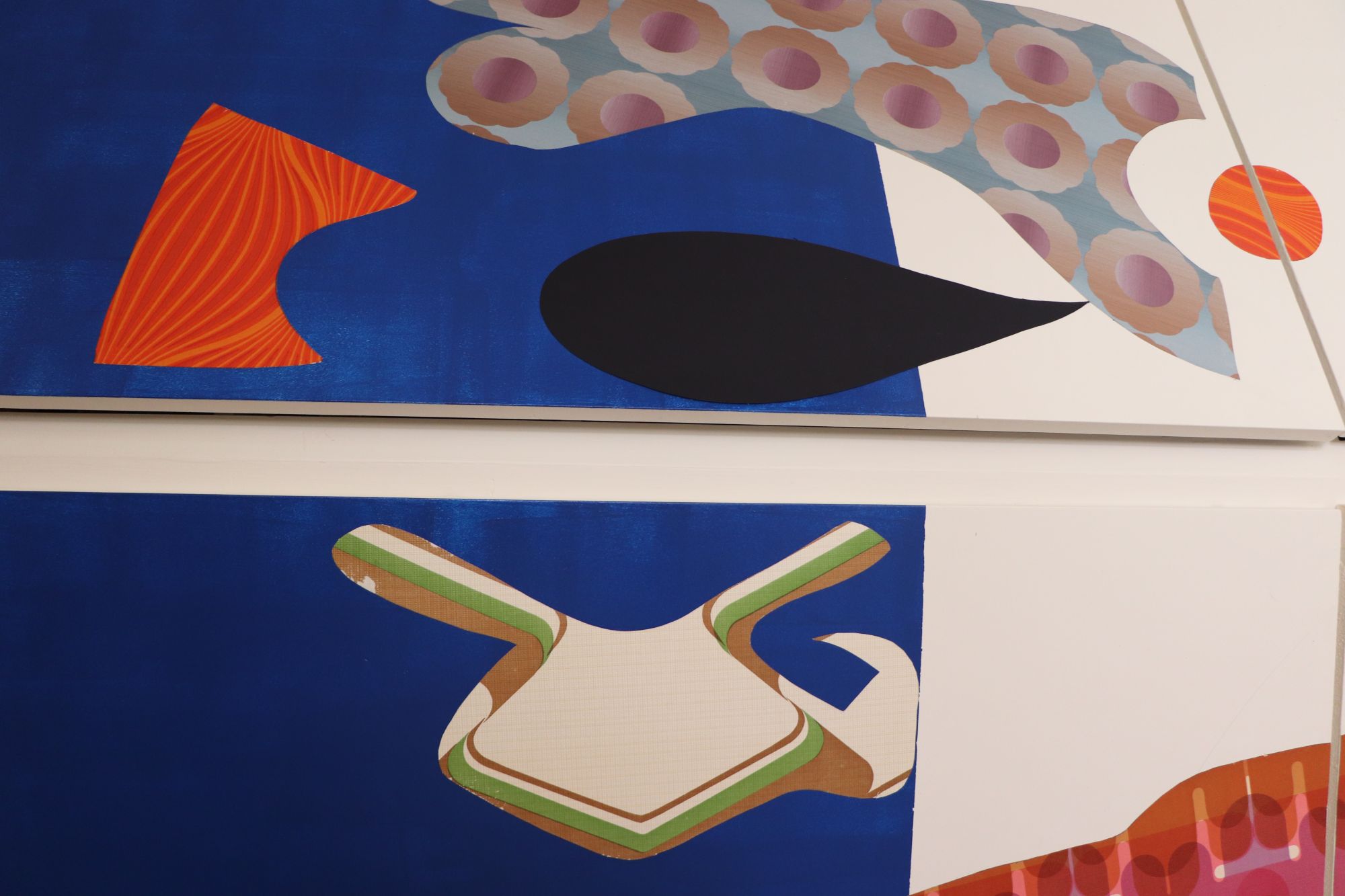 Ένας διακριτικός κυματισμός στην τοποθέτηση των πάνελ προσδίδει την αίσθηση της κίνησης. Το έργο αποτελείται από 12 ξύλινα πάνελ. Πρόκειται για επαναχρησιμοποιημένα φύλλα ντουλάπας, καθώς και χαρτιά ταπετσαρίας της δεκαετίας του ’60.