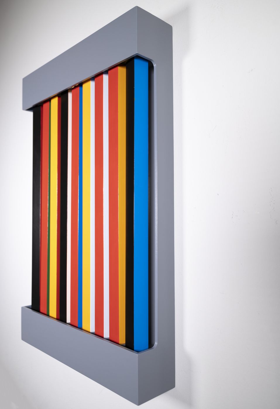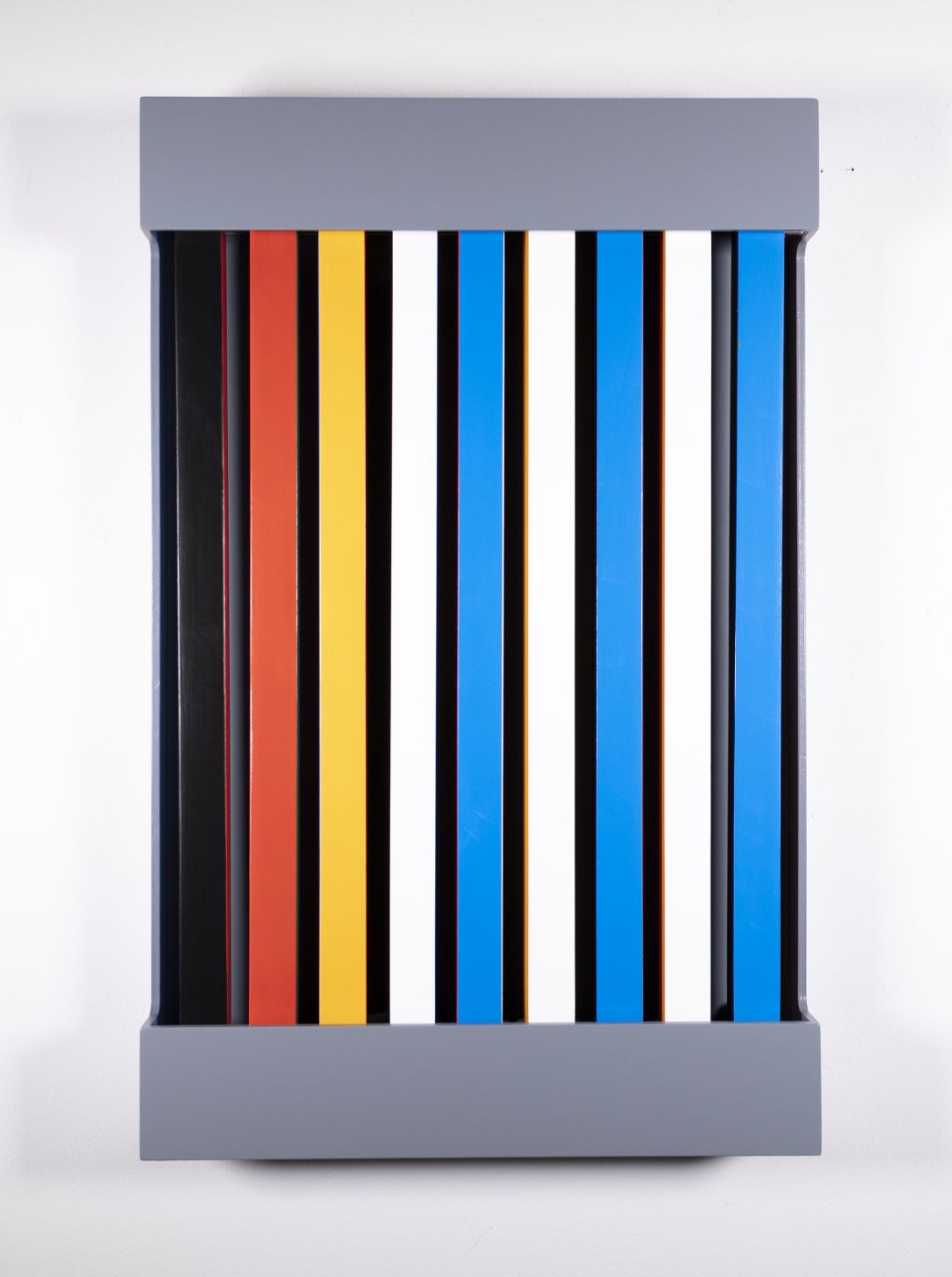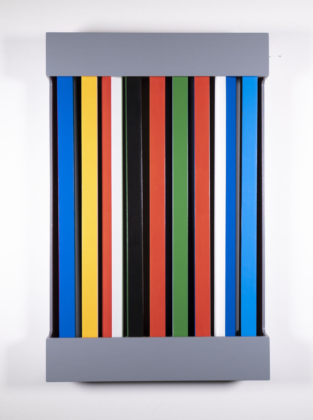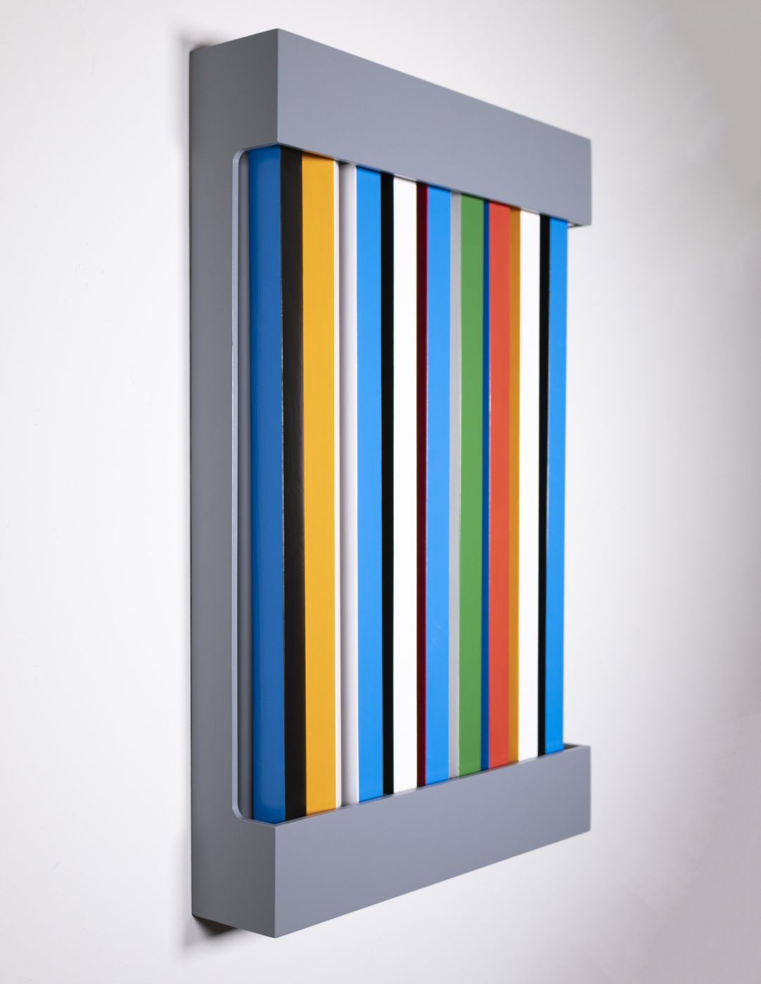 Οι εννέα κάθετες κινούμενες ράβδοι συμβολίζουν τις λωρίδες της ελληνικής σημαίας, με τα αντίστοιχα χρώματα (γαλάζιο και άσπρο). Καθώς περιστρέφονται από τους προγραμματισμένους κινητήρες στη βάση τους, χρώματα άλλων σημαίων αναμειγνύονται με τα ελληνικά (κόκκινο, κίτρινο, πράσινο κλπ).