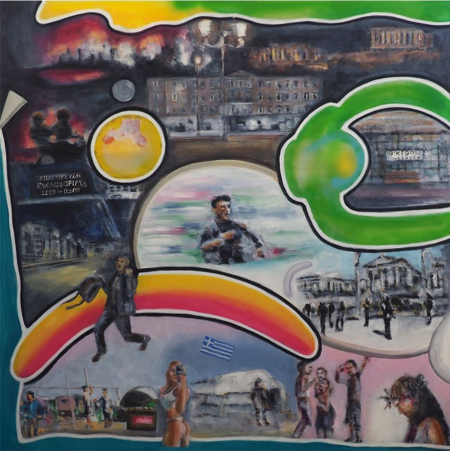 Οι εικόνες του έργου είναι από φωτογραφίες που χαρακτηρίζουν συμβολικά την παρούσα ελληνική πραγματικότητα.